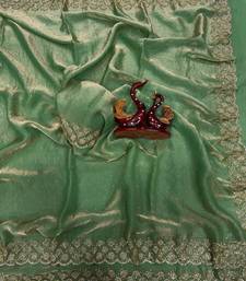 Sea green color diamond work space silk saree