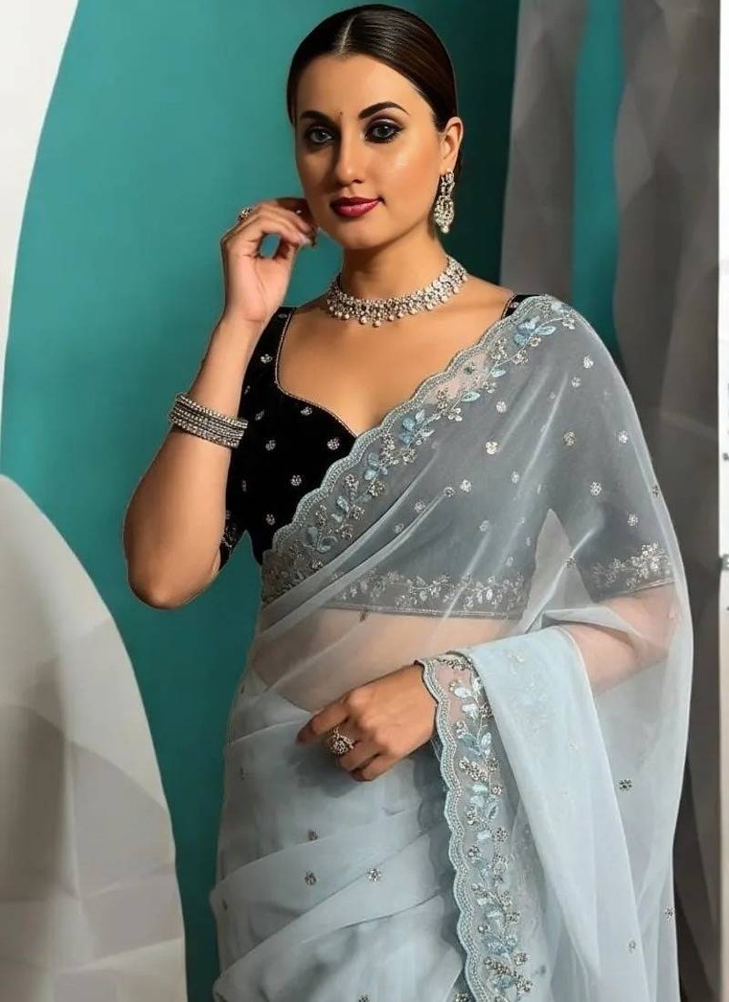 | Product Name | Sky Blue Color Beads And Sequins And Multi Thread Work Faux Georgette Saree | |