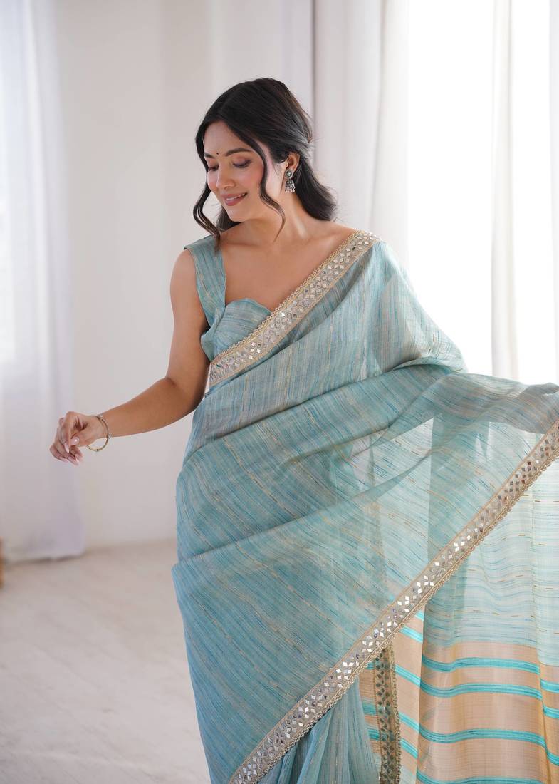| Product Name | Sky Blue Jari Dori Embroidery Cotton Saree With Mirror Work | |