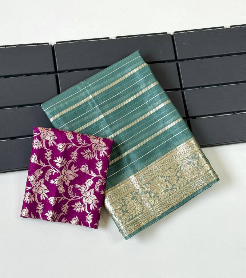 | Product Description | Saree: Naylon Viscos Georgette Mx Jari Jaqurad Weaving All Over Body Line And Both Sides Border Weaving Blouse Fabric : Dola Silk Jaqurad Weaving All Over Work : Purely Hand Daying Single Colour Saree And Contrast Colour Blouse Piece |