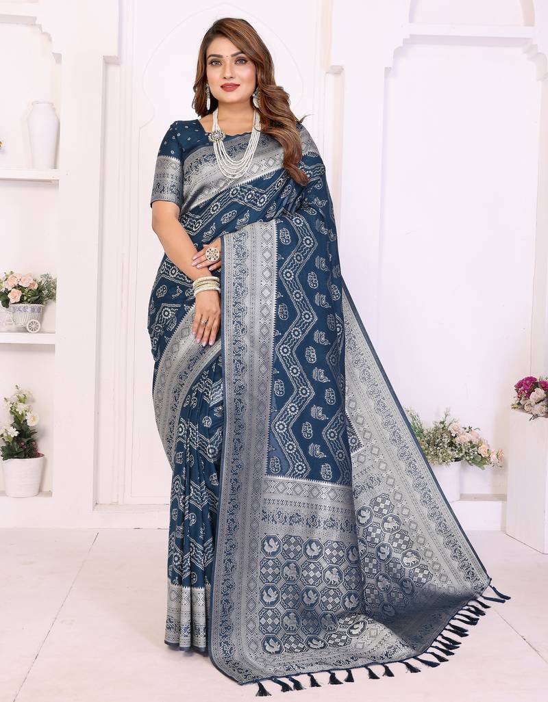 | Product Name | Teal Color Zari Weaving Georgette Silk Saree | |