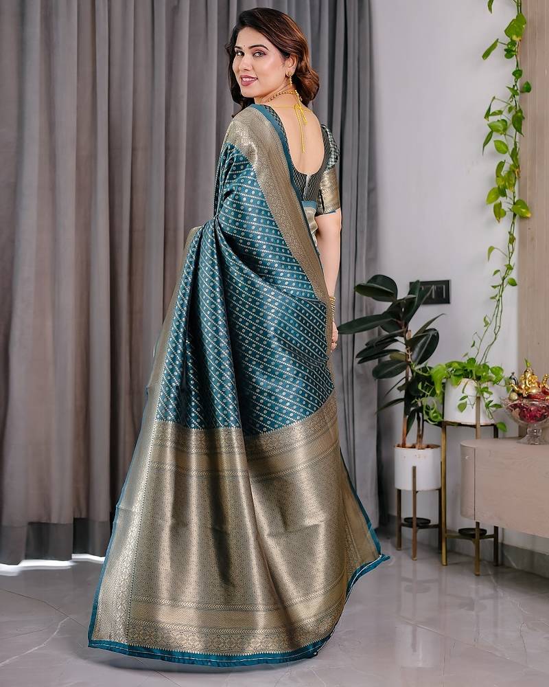 Teal Color Zari Woven Banarasi Art Silk Saree