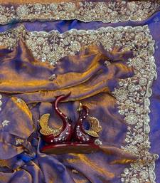 Violet color beads and sequence embroidery work space silk blend saree