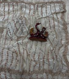White color beads and sequence embroidery work space silk saree