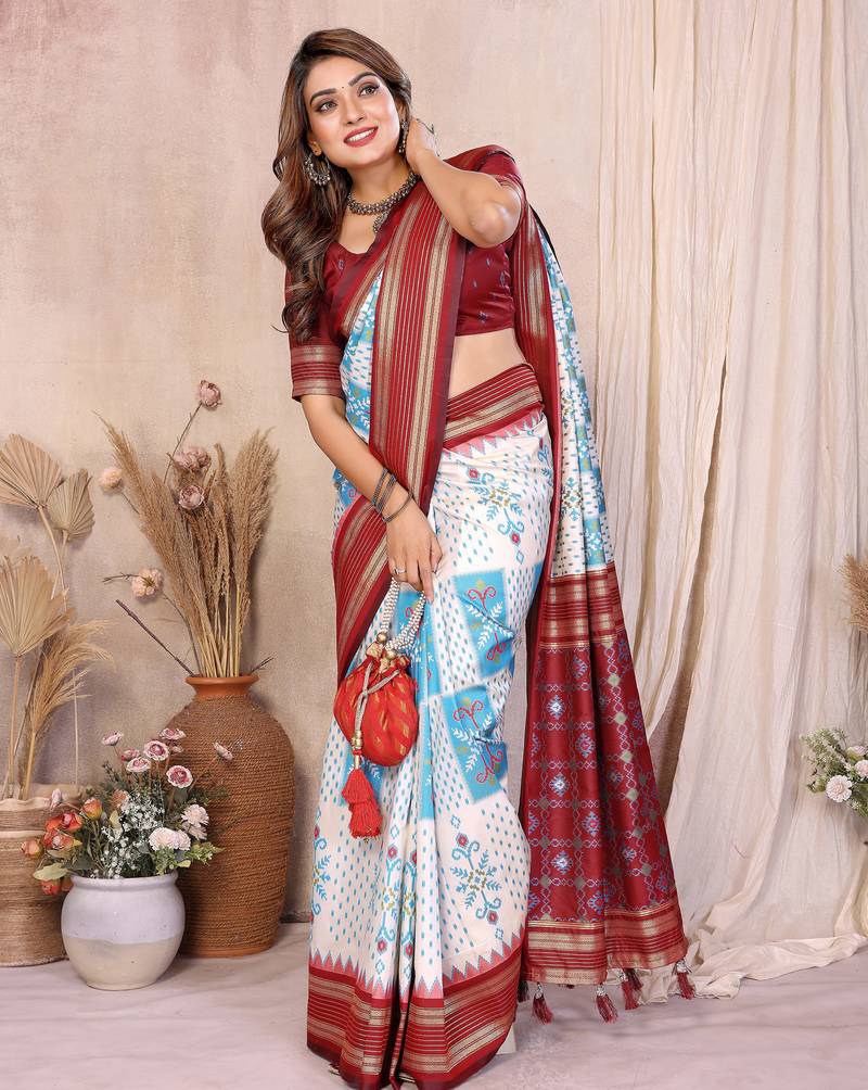 | Product Name | White Color Ikat Weaving Silk Saree | |
