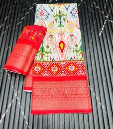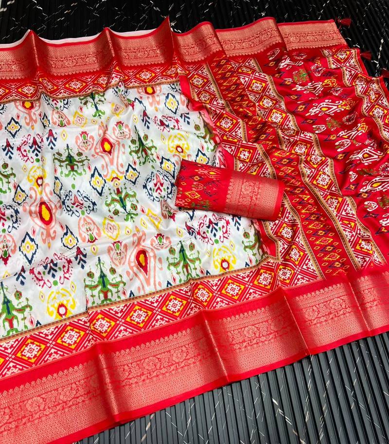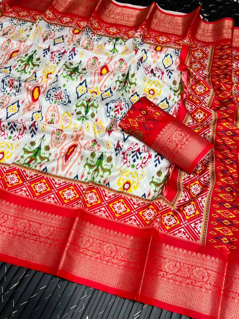 Work : Pure Uhd Digital Ikkat Patola Printing With Hevey Hand Made Tassels Fumka On Pallu |
