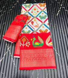 White color jaqurad jari weveing work dola lichi art silk saree