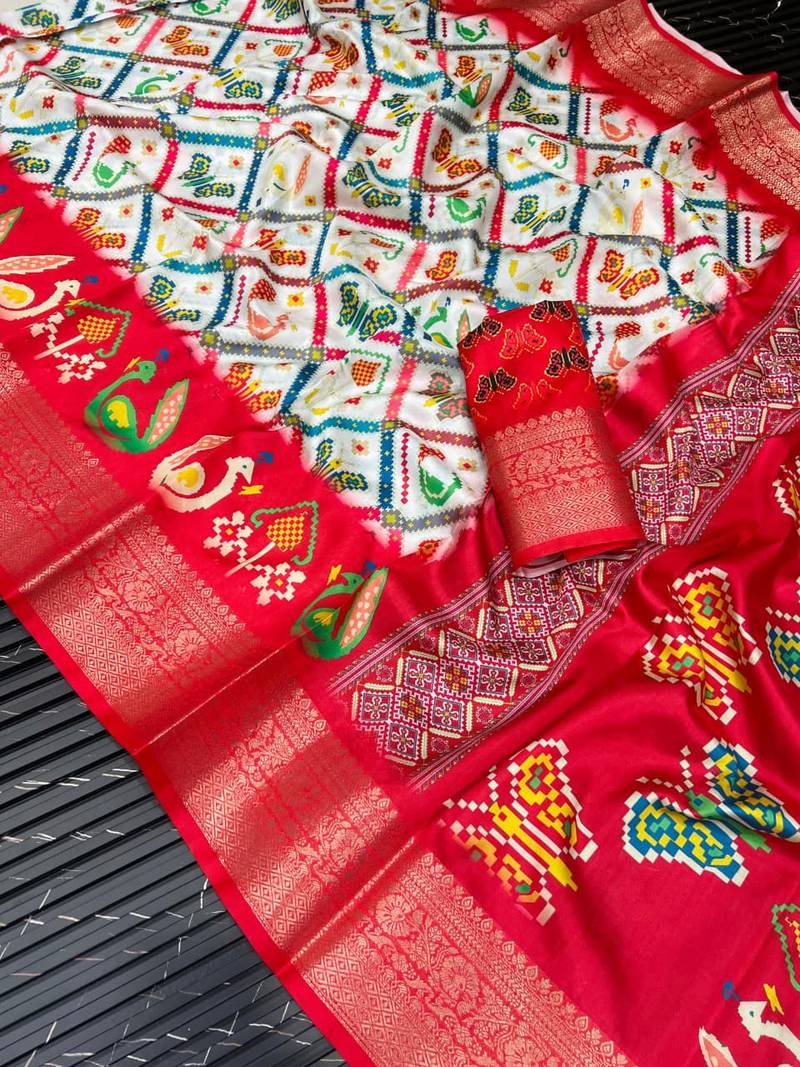 Work : Pure Uhd Digital Ikkat Patola Printing With Hevey Hand Made Tassels Fumka On Pallu |