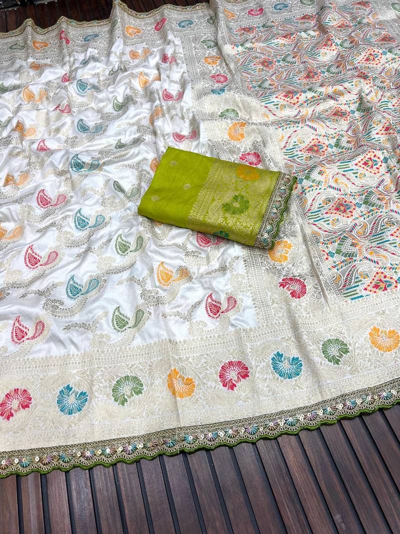| Product Name | White Color Meenakari Jaqurad Work Dola Silk Blend Saree | |