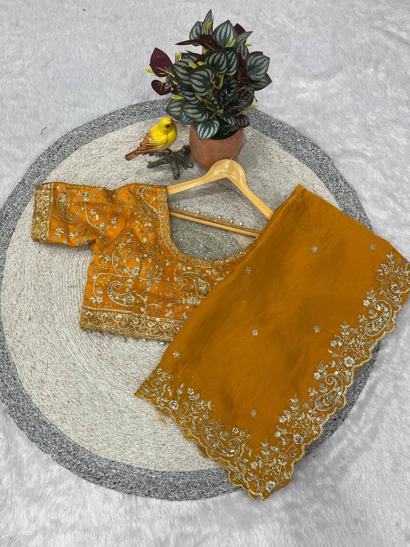 | Product Name | Yellow Color Embroidered Satin Silk Saree | |