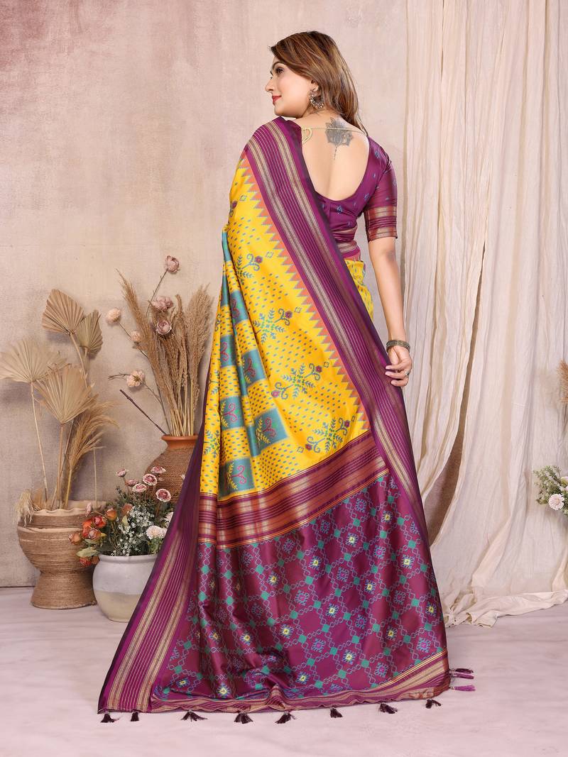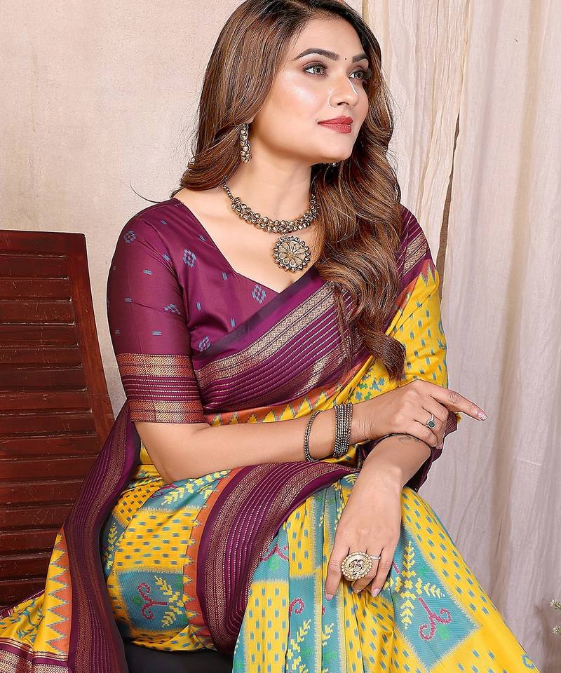 | Product Name | Yellow Color Ikat Weaving Silk Saree | |