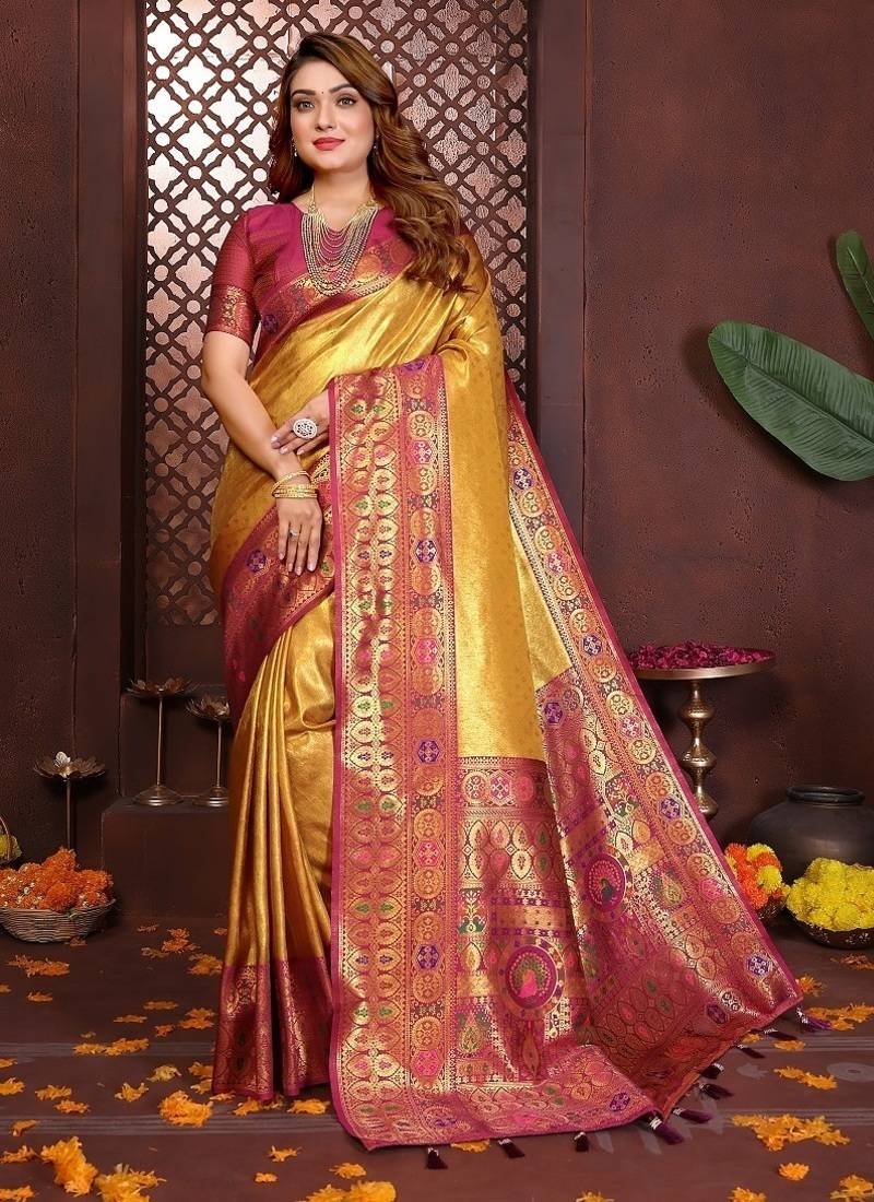 | Product Name | Yellow Color Zari Weaving Banarasi Tissue Silk Saree | |