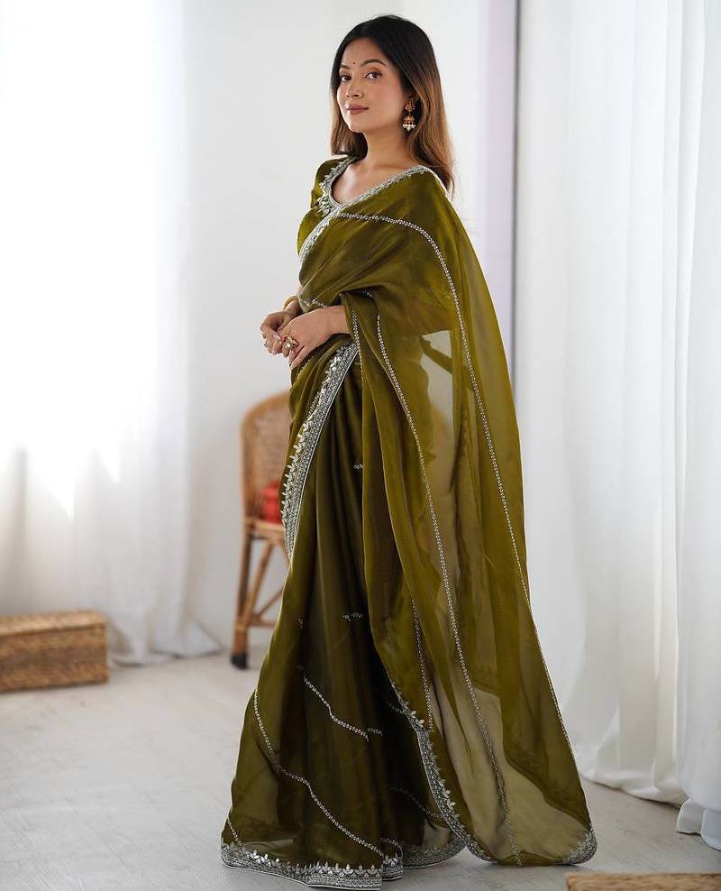 | Product Name | Mahendi Thread Sequence Organza Silk Party Wear Saree | |