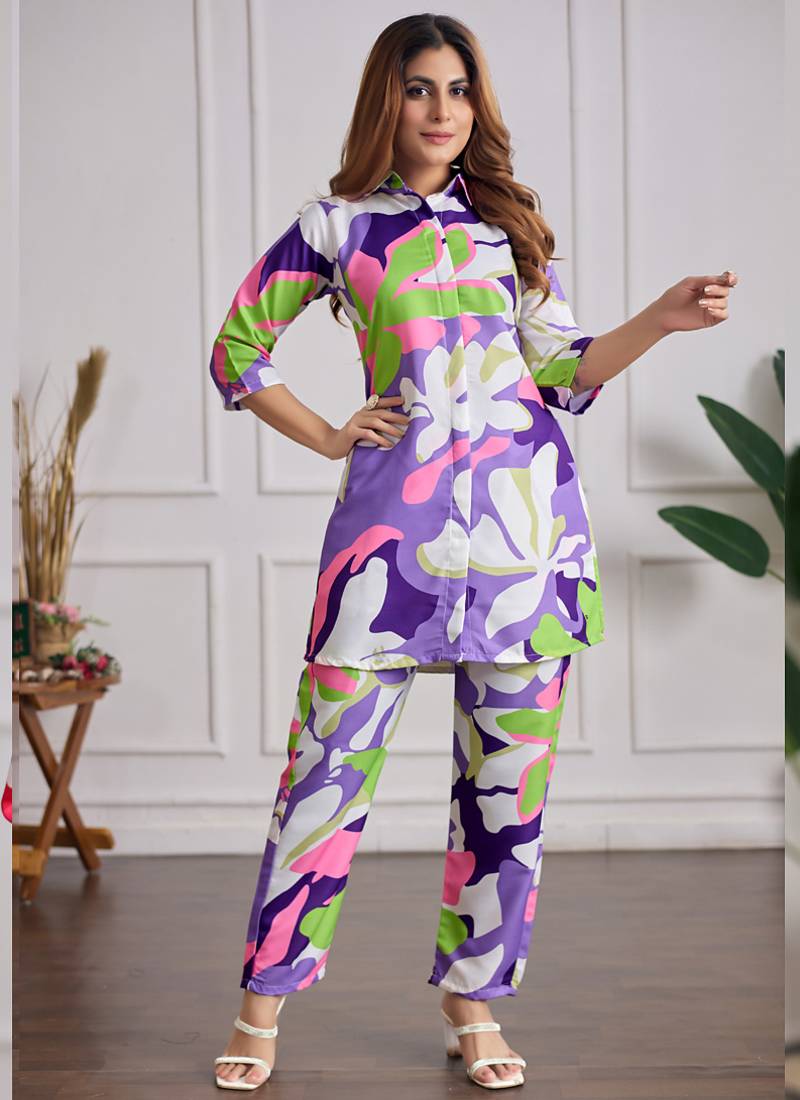 Multi color printed cotton reyon festival wear co-ord set stitched
