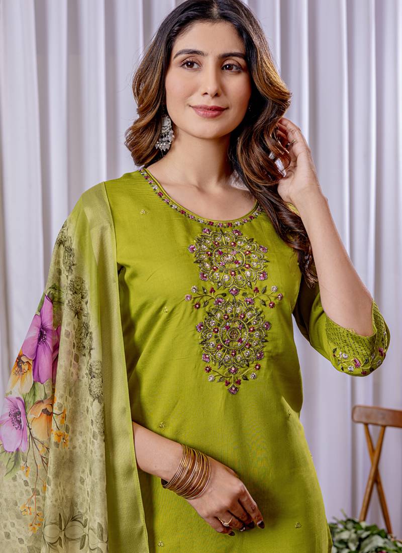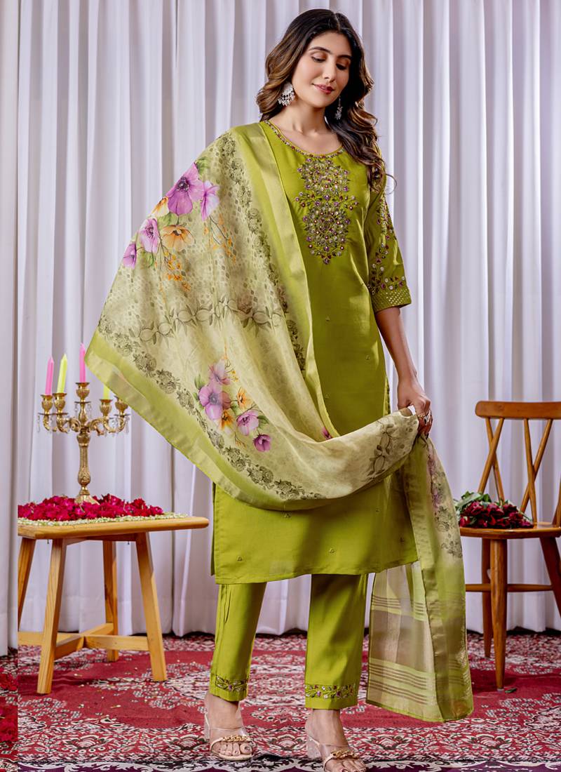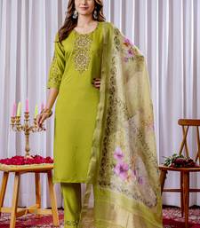 Parrot green viscose silk thread embroidered designer salwar suit stitched