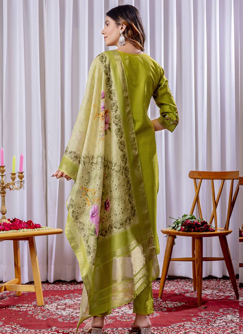 | • | Dupatta | : | Color- Light Green / Fabric- Chanderi Silk |