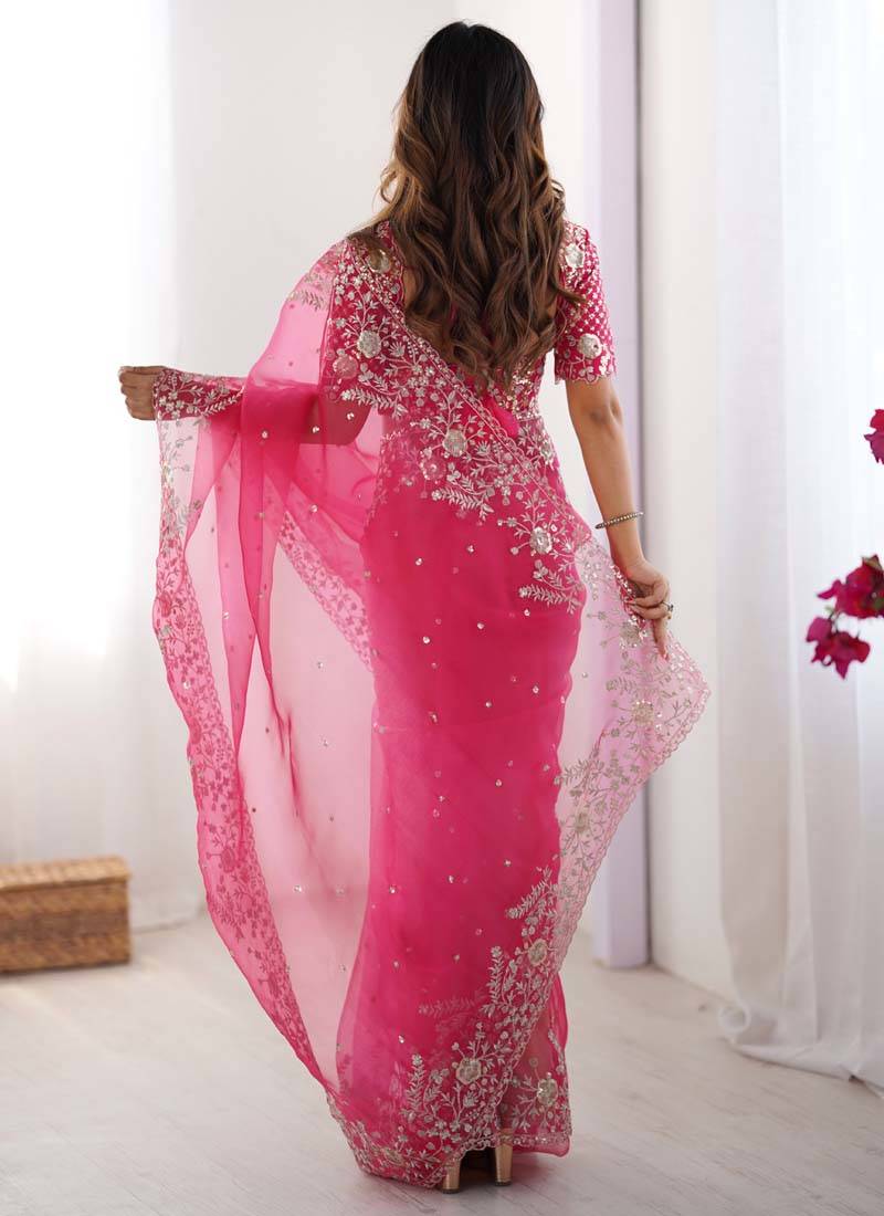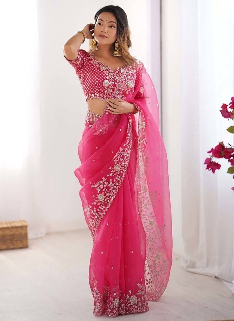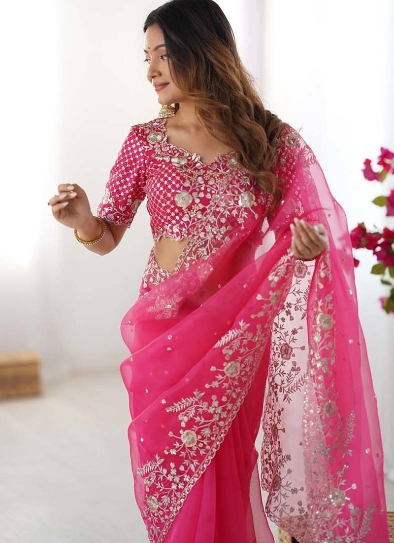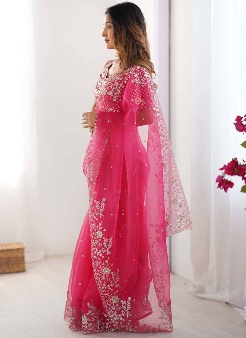 | Product Name | Pink Thread Sequence Organza Silk Party Wear Saree | |