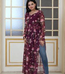 Wine butti with floral degital print nayra cut kurti