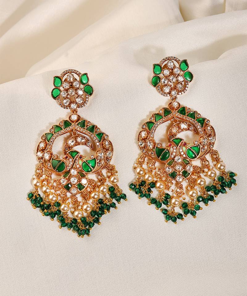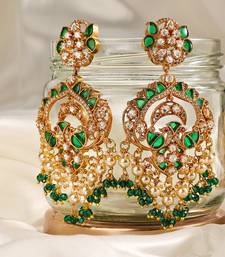 | Product Description | These Gold Plated Kundan Green Stones Chandbali Earrings Radiate Traditional Elegance And Festive Charm. Featuring Intricate Kundan Work Adorned With Vibrant Green Stones, They Create A Graceful, Eye Catching Silhouette. Perfect For Weddings And Special Occasions, They Beautifully Complement Ethnic Ensembles With Timeless Sophistication.