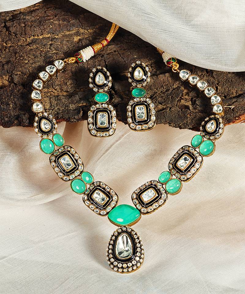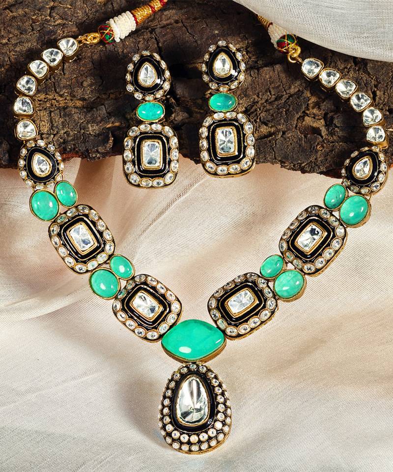| Product Name | Gold Plated Kundan Green Stones Necklace Set | |
