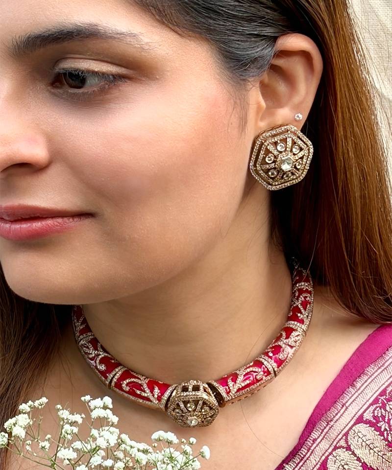 | Product Description | This Gold Plated Kundan Red Stones Necklace Set Exudes Regal Elegance And Festive Charm. Adorned With Rich Red Stones And Intricate Kundan Craftsmanship, It Adds A Luxurious Touch. Perfect For Weddings And Celebrations, It Enhances Ethnic Ensembles With Timeless Beauty And Refined Sophistication.