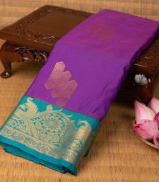 Blue violet and teal semi silk saree