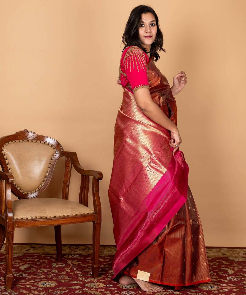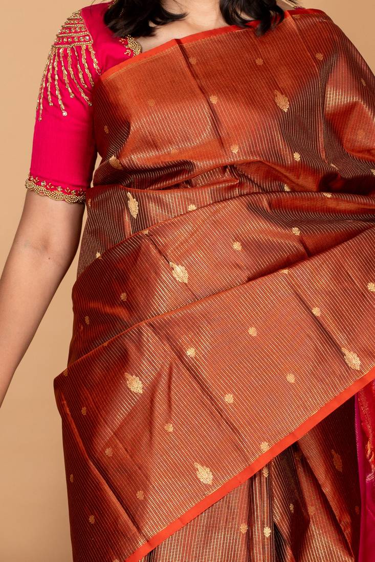 | Product Name | Brown And Pink Checks Silk Saree | |