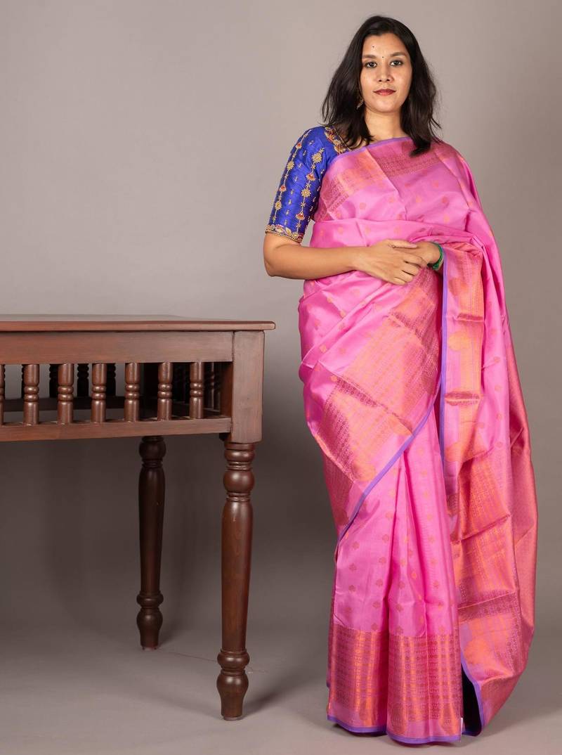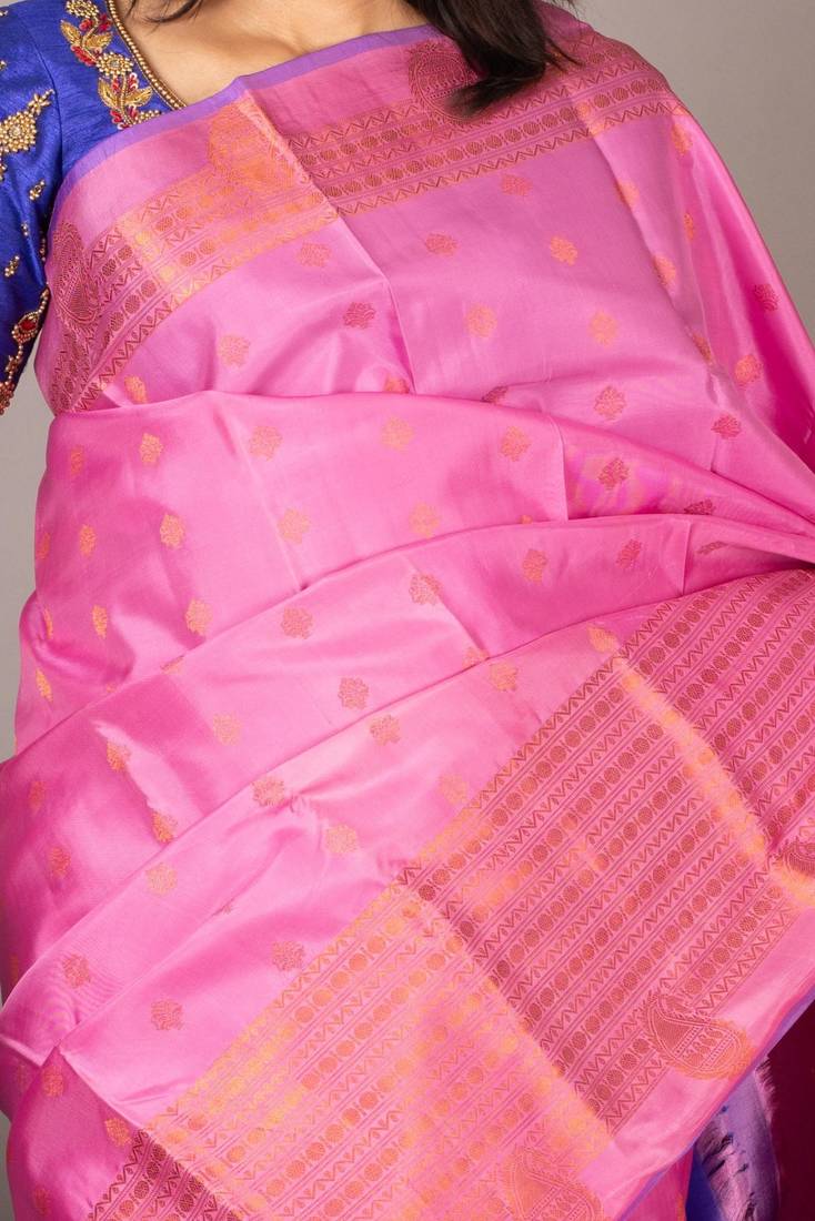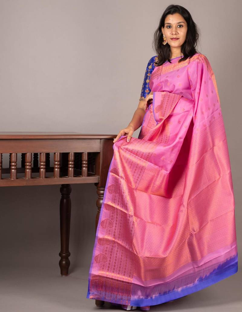 Dark blue & pink kanchipuram silk saree with silk mark certified