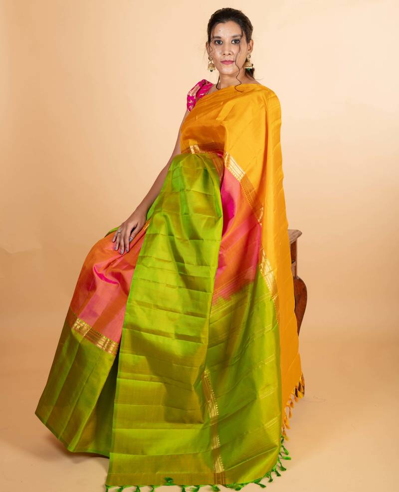 Earthy green-yellow two tone saree