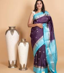 Grape and sky blue kanjivaram pattu saree