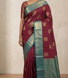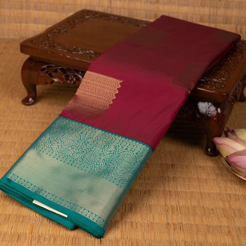 Maroon teal green semi silk saree