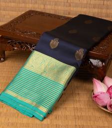 Navy blue and teal blue pure touch silk saree