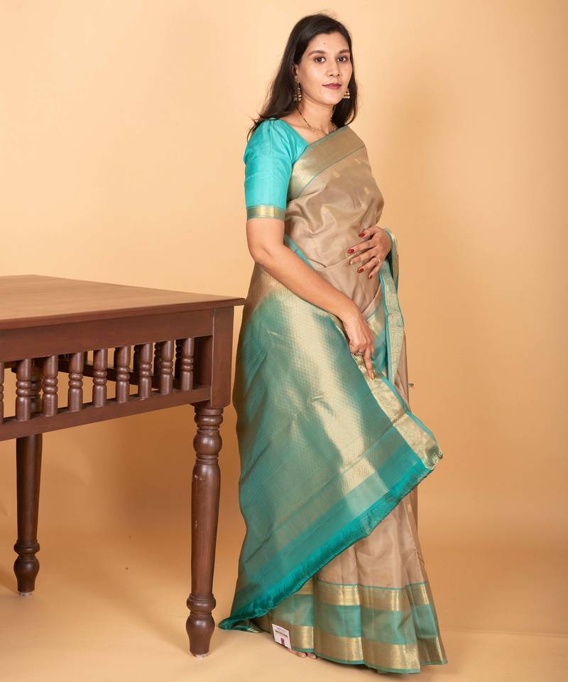 | Product Name | Oatmeal White And Dual Tone Blue Retta Patta Border Pure Kanchi Silk Saree | |