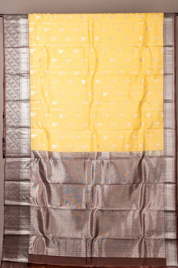 Yellow and chocolate pure touch silk saree please change