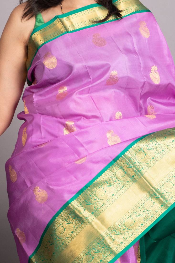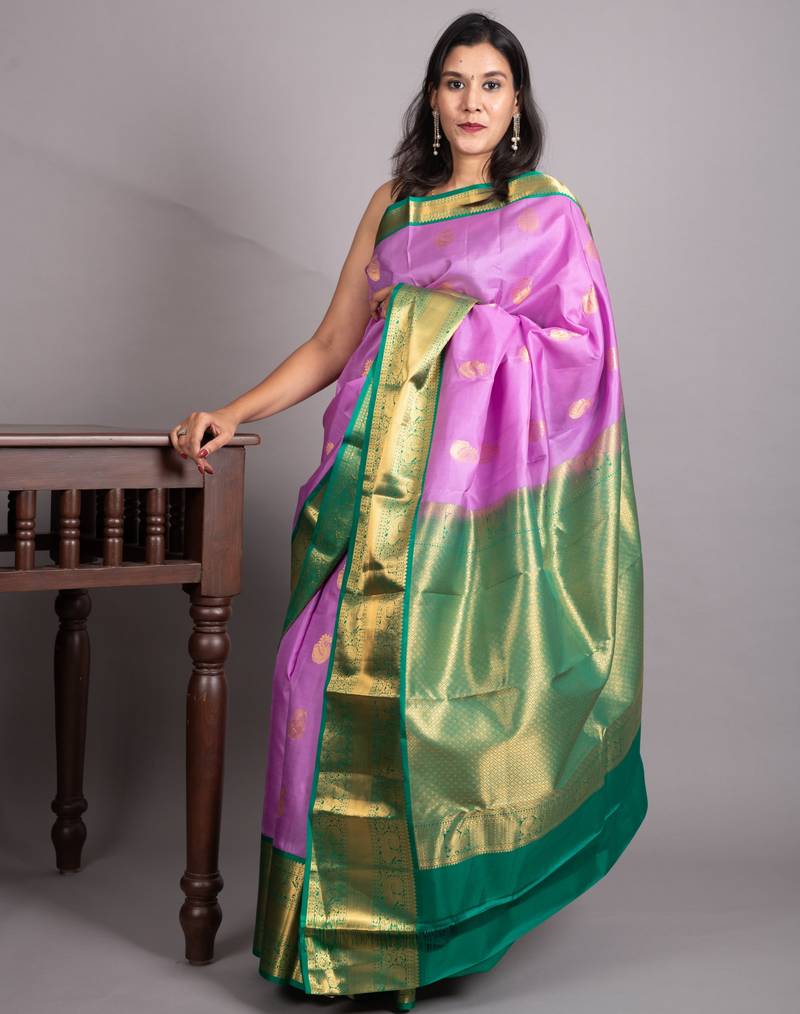 | Product Name | Orchid Purple And Teal Blue Pure Kanjivaram Silk Saree | |