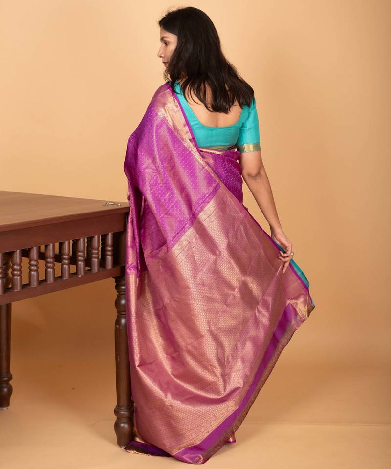 | Product Name | Wildberry Purple And Aqua Blue Tissue Pure Kanjivaram Silk Saree | |