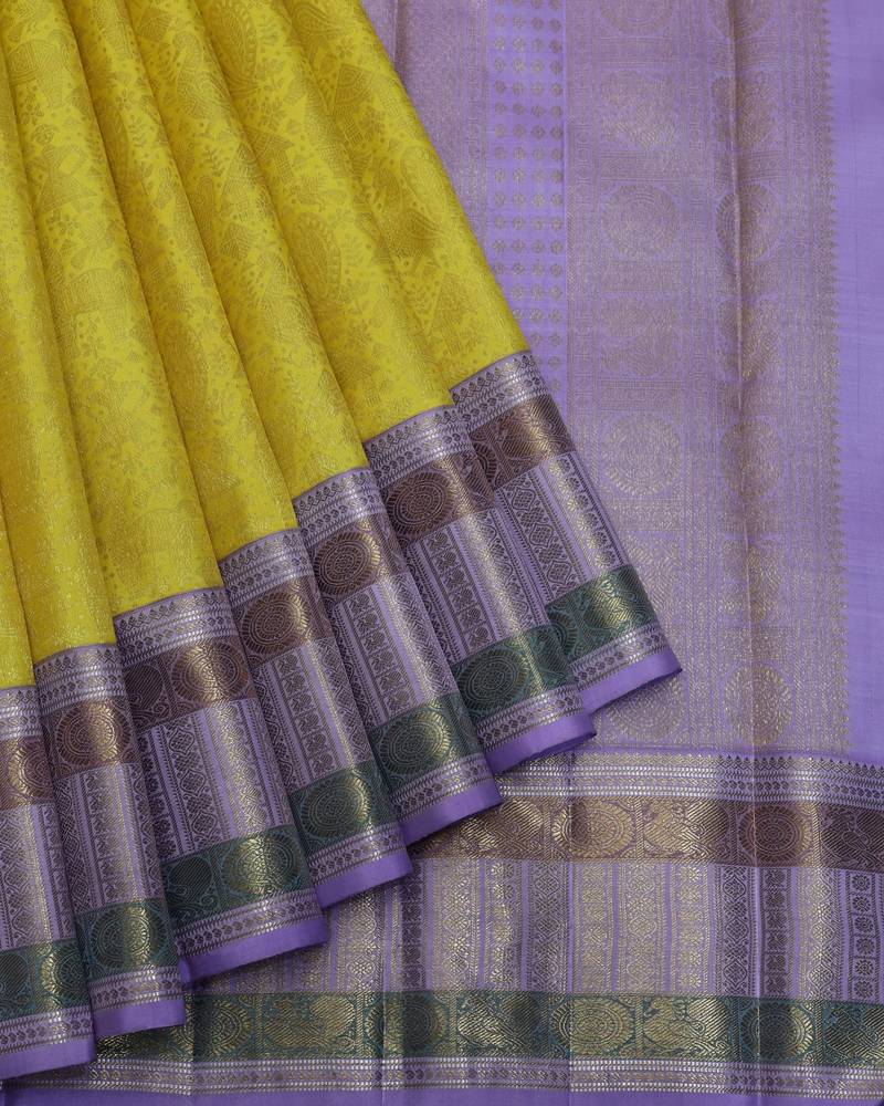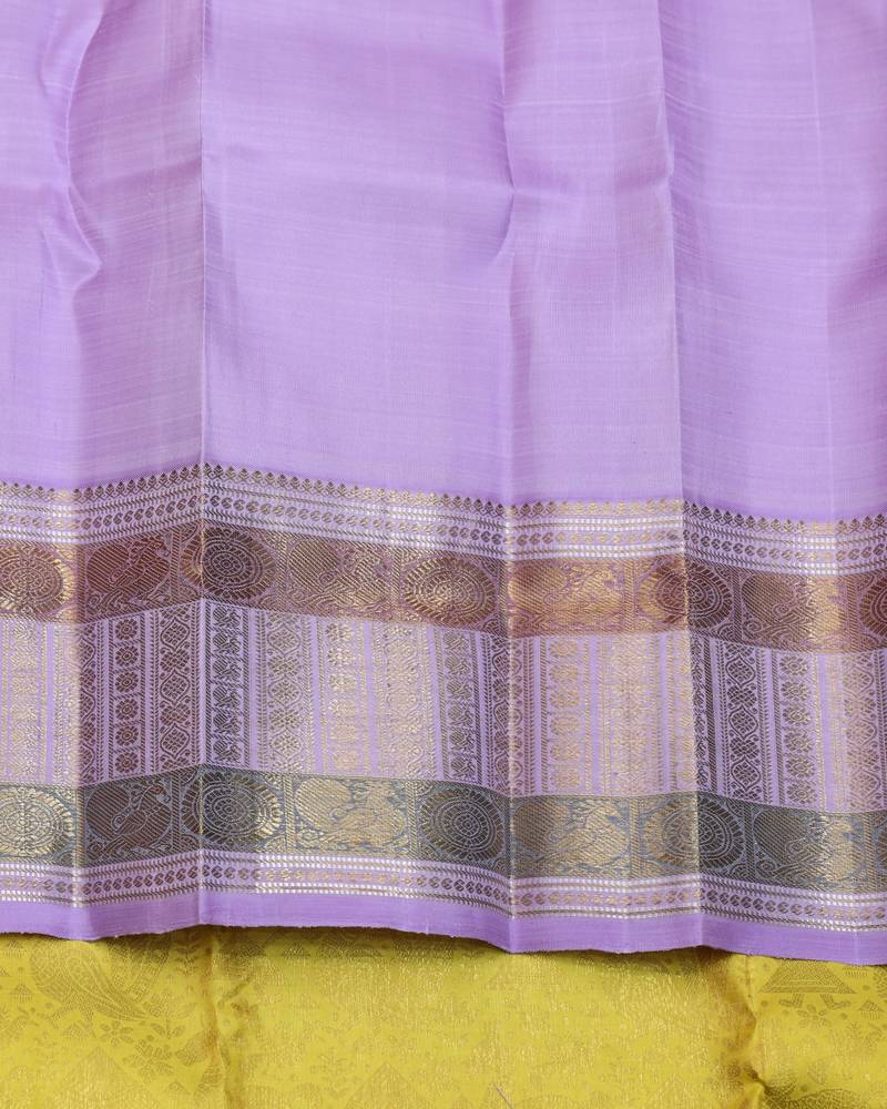 Yellow and lavender pure zari silk saree