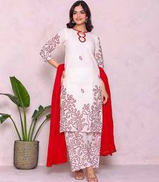 Ethnic motifs embroidered pure cotton kurta with palazzos & dupatta stitched