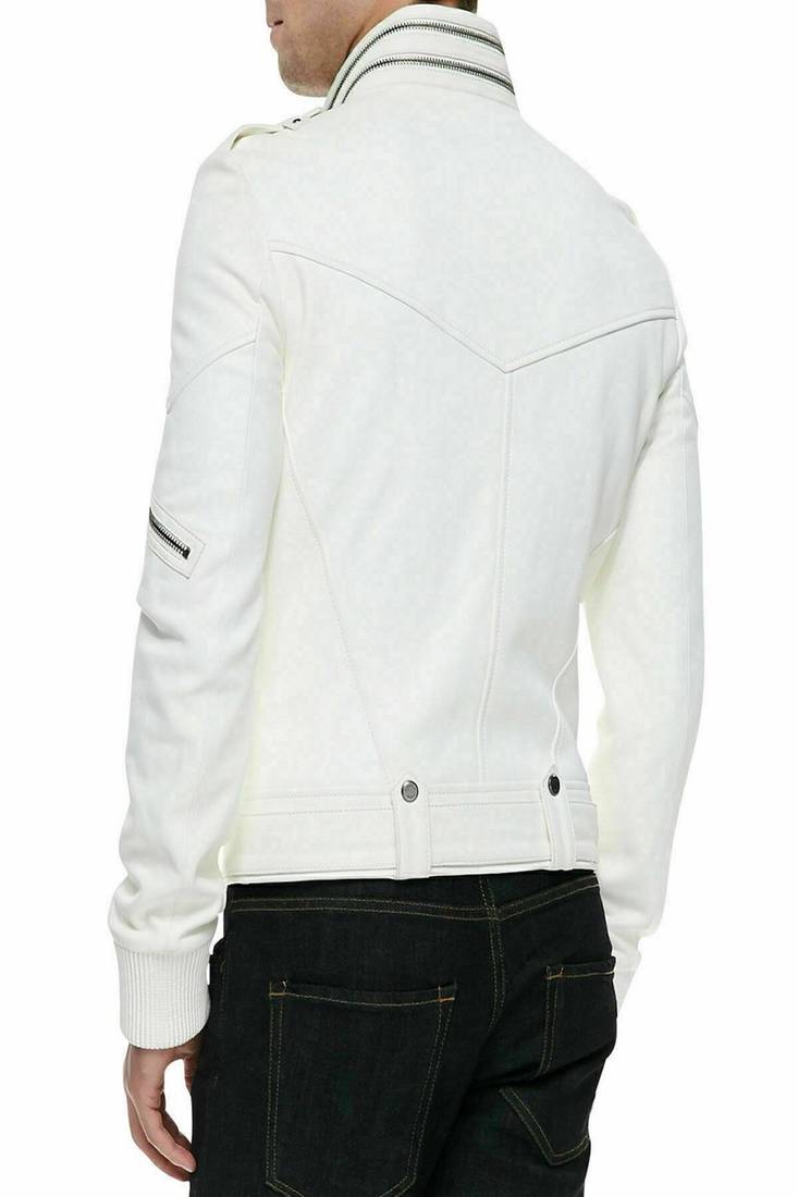 | Product Name | Men's Off White Genuine Leather Jacket Motorcycle Biker Zipper Buckle | |