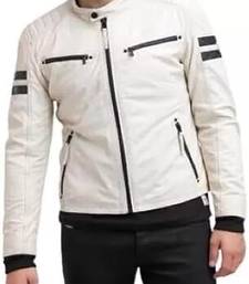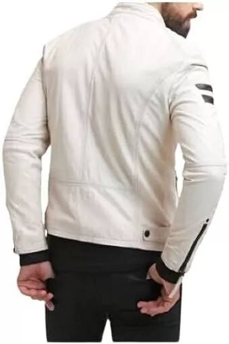 | Product Name | Men’s Off White Leather Biker Jacket Slim Fit Moto Style Zip Up Jacket With Stripe Detail | |