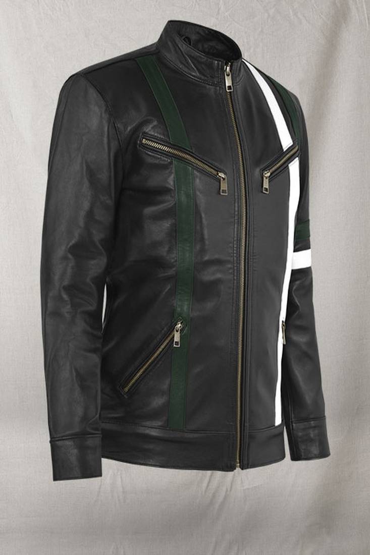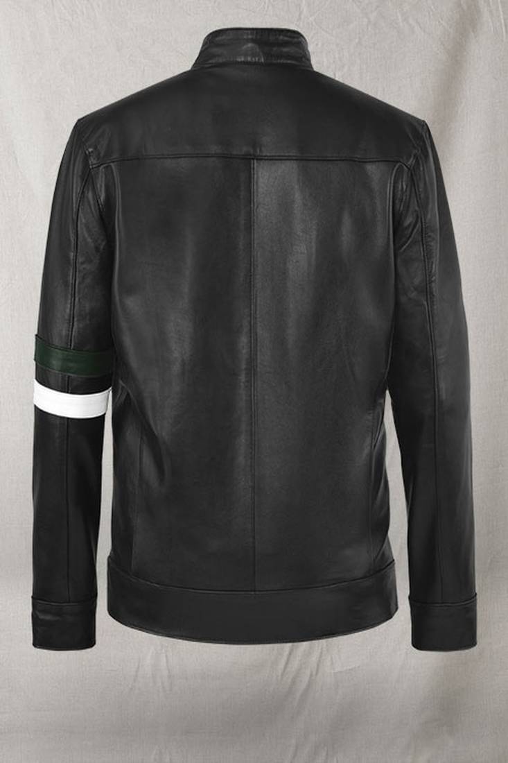 | Product Name | Qawach Men's Black Genuine Leather Café Racer Jacket White Strip | |