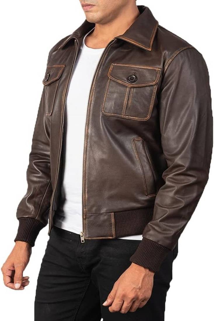 | Product Name | Qawach Men's Brown Genuine Leather Jacket Vintage Bomber Motorcycle Jacket | |
