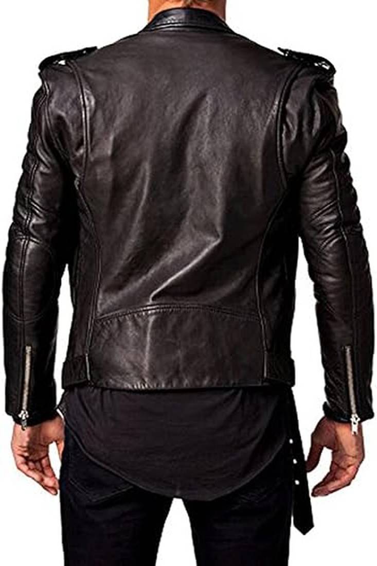 Qawach men's genuine black motorcycle biker jacket lambskin jacket