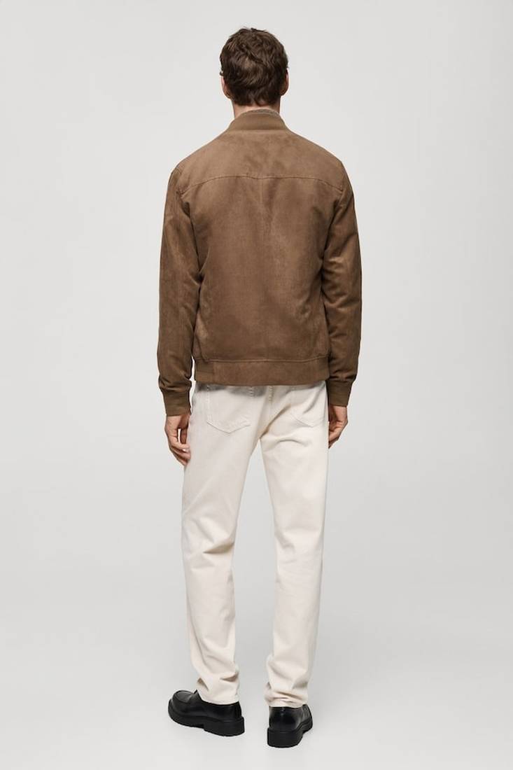 Qawach men's genuine brown suede leather jacket rib collar vintage bomber