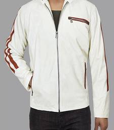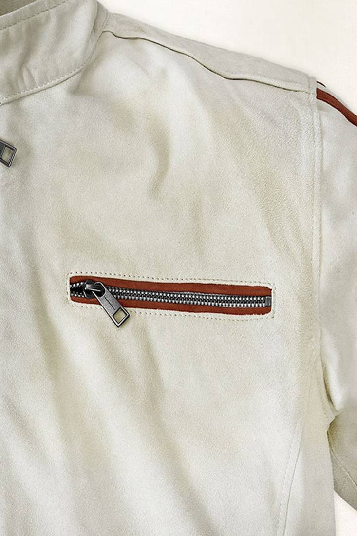 | Product Name | Qawach Men's White Genuine Leather Biker Jacket Lambskin Red Strip Jacket | |