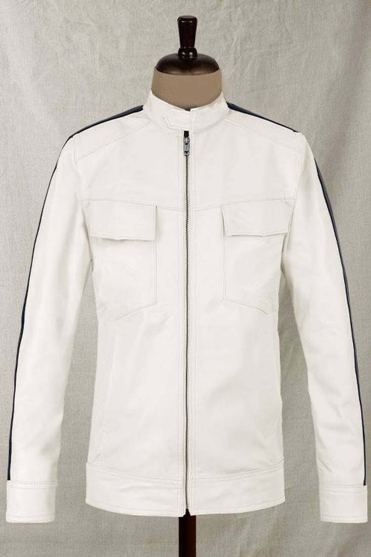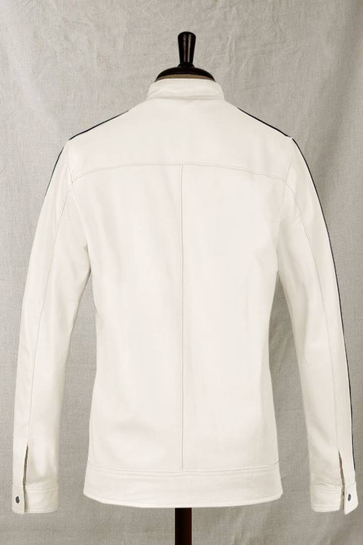 | Product Name | Qawach Men's White With Black Strip Genuine Leather Jacket Lambskin Vintage Pocket | |