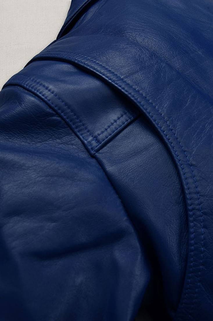 Qawach men's zipper genuine lambskin leather motorcycle jacket blue
