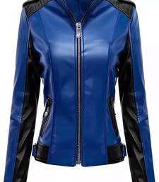 | Product Name | Women’s Blue & Black Genuine Leather Biker Jacket Slim Fit Zip Up Motorcycle Coat | |