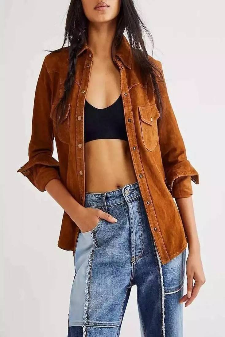 | Product Name | Women’s Brown Suede Leather Jacket Genuine Lambskin Western Biker Style | |