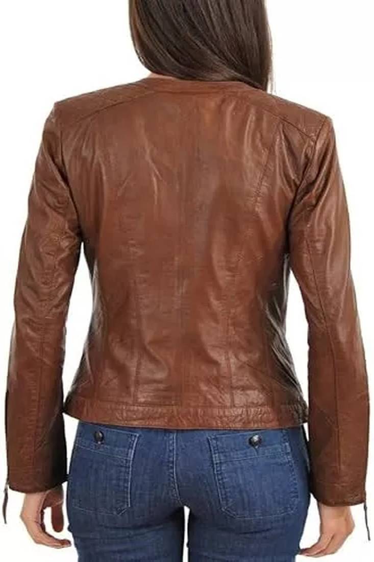 | Product Name | Women’s Genuine Lambskin Leather Jacket Brown Moto Biker Slim Fit Classic | |